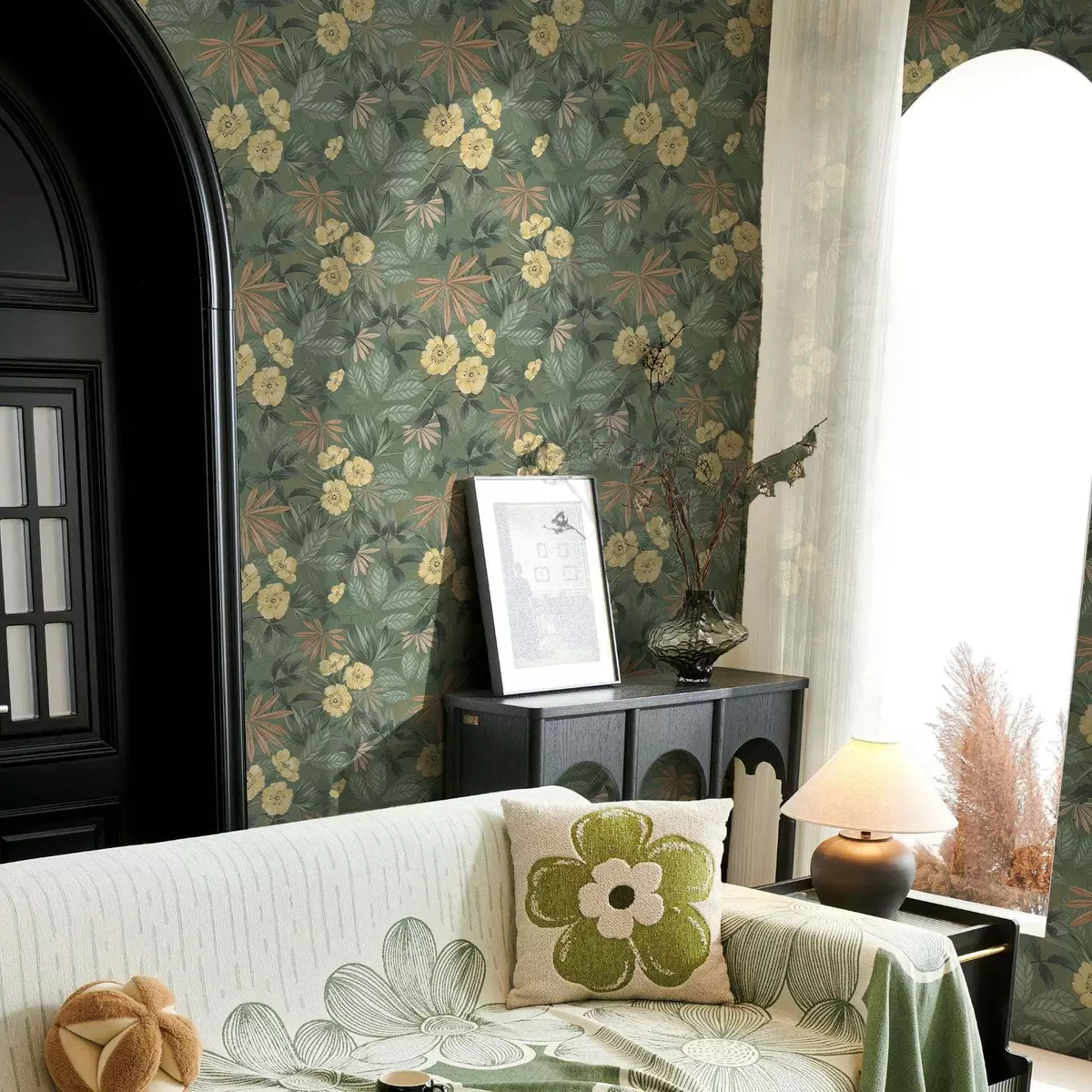 Tapeta Жуто цвеће усред зелене лиснате текстуре бр. a00718