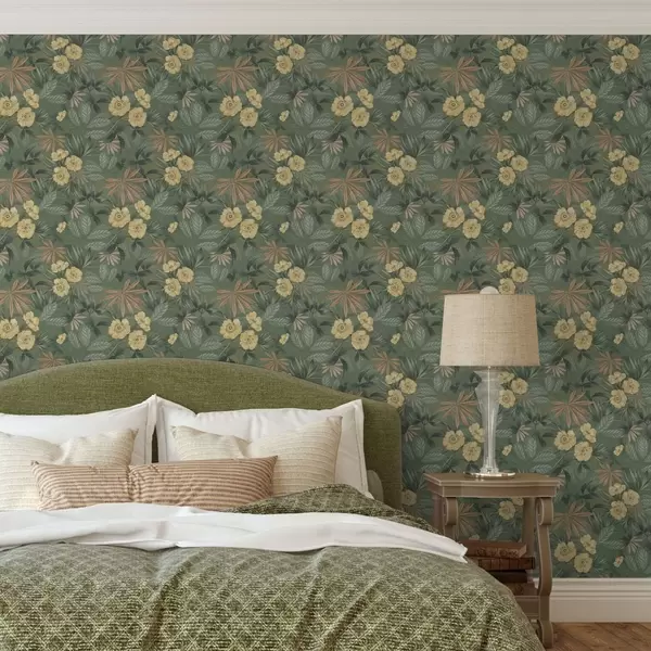 Tapeta Жуто цвеће усред зелене лиснате текстуре бр. a00718