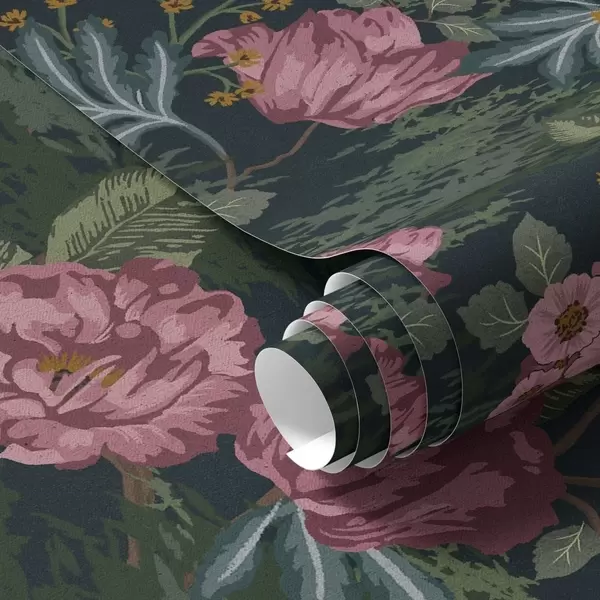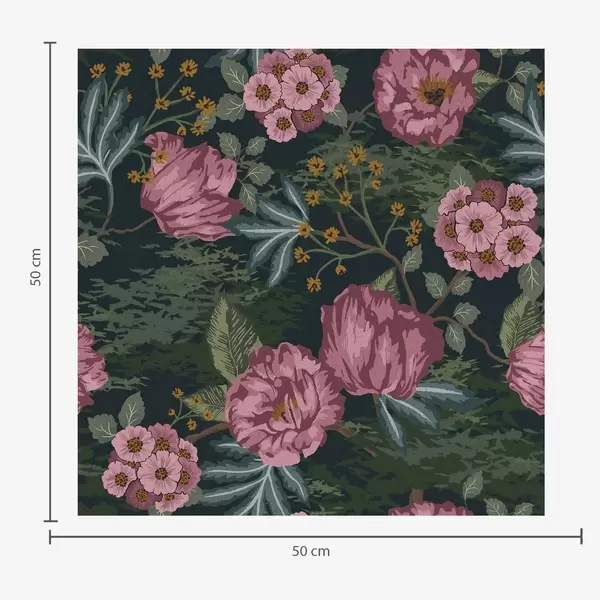 Tapeta Тамна флора са ружичастим цветовима и листовима, дубока позадина бр. a00724