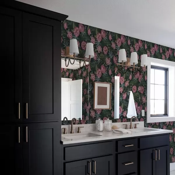 Tapeta Тамна флора са ружичастим цветовима и листовима, дубока позадина бр. a00724