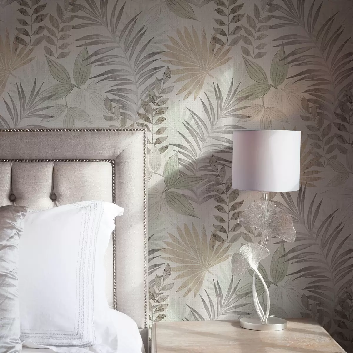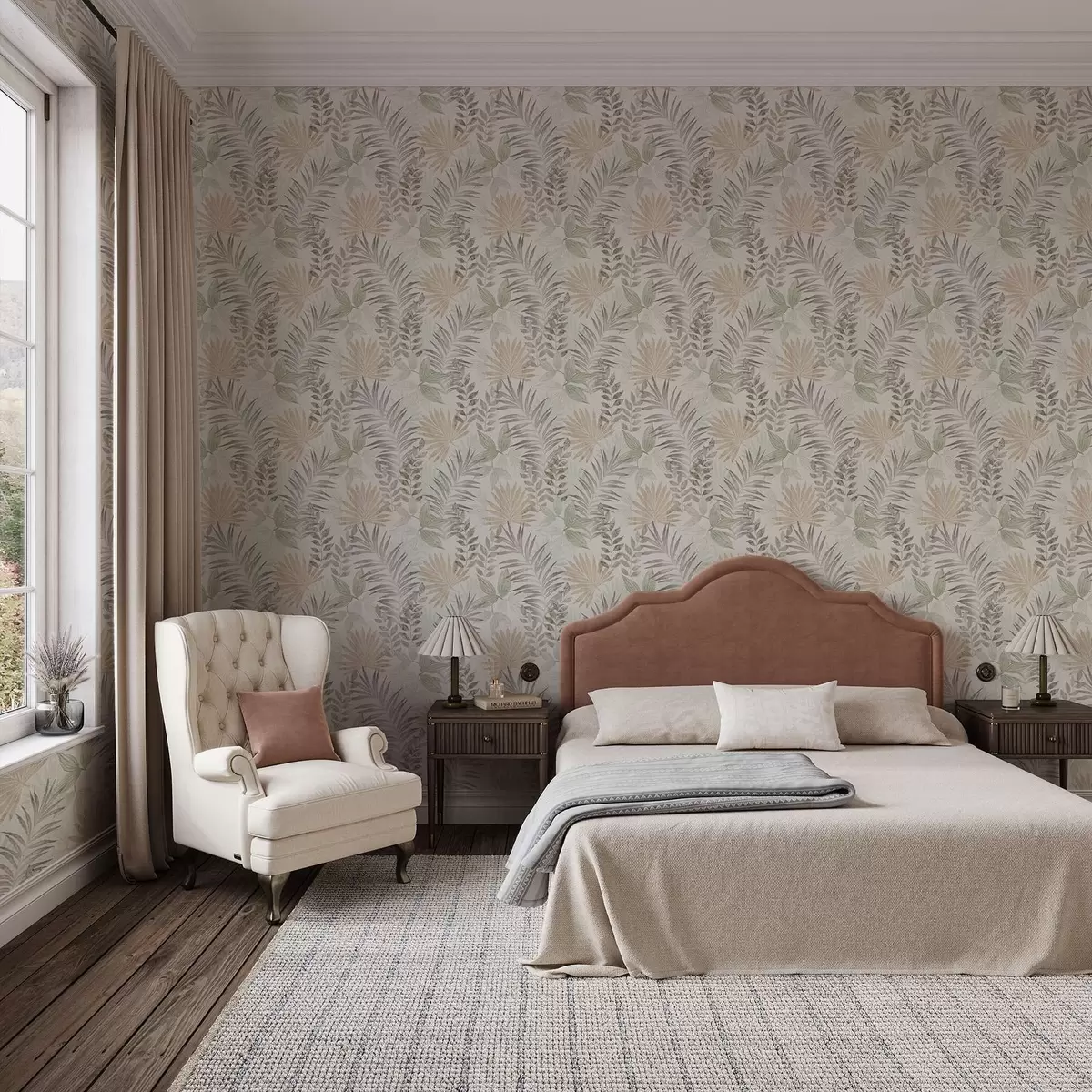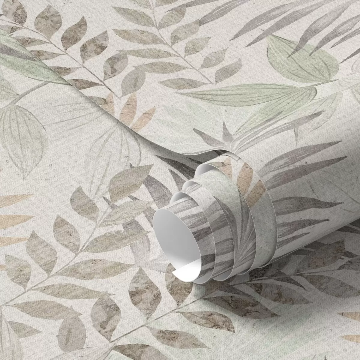 Tapeta Пастелно тропско лишће на светлој позадини, суптилна текстура бр. a00725