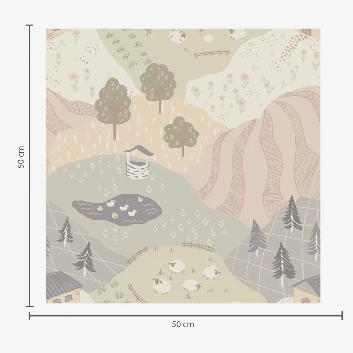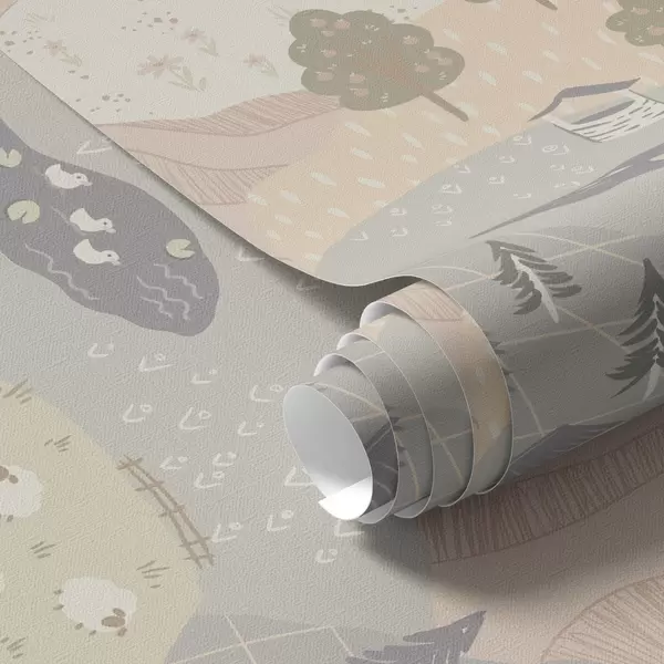 Tapeta Бајковита сеоска природа са дрвећем, гускама и овцама бр. a00728