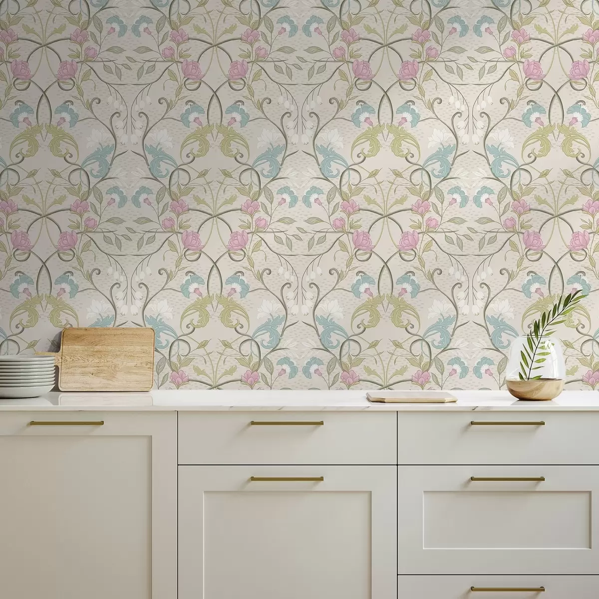 Tapeta Елегантан цветни узорак са ружичастим и плавим цвећем бр. a00730