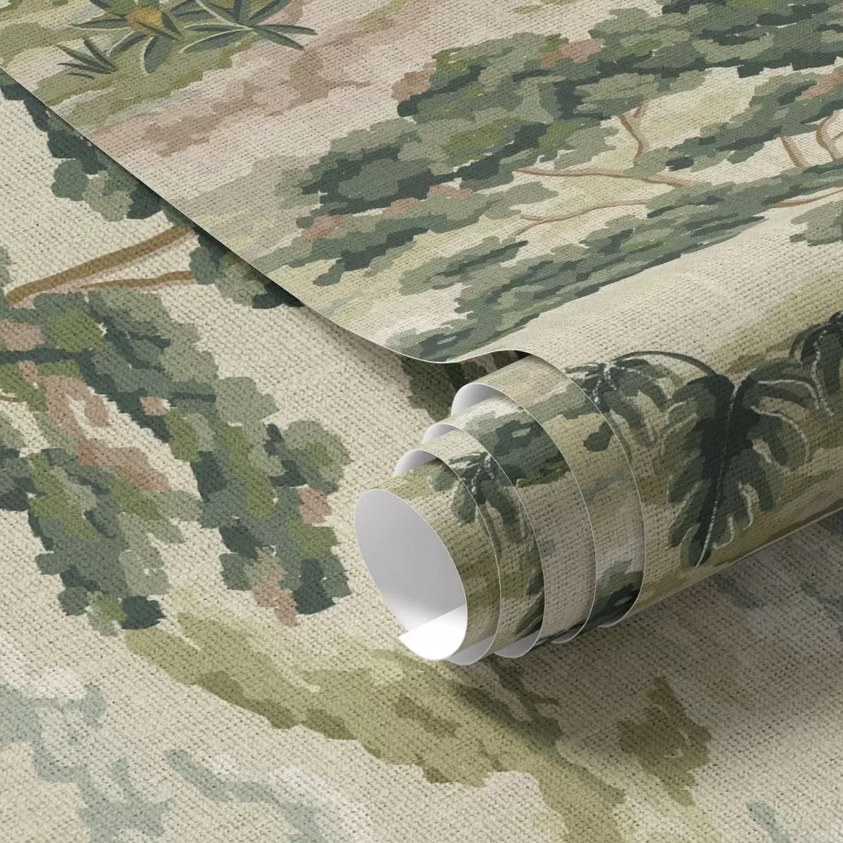 Tapeta Пејзаж са реком, дрвећем и палмама у меким тоновима бр. a00736