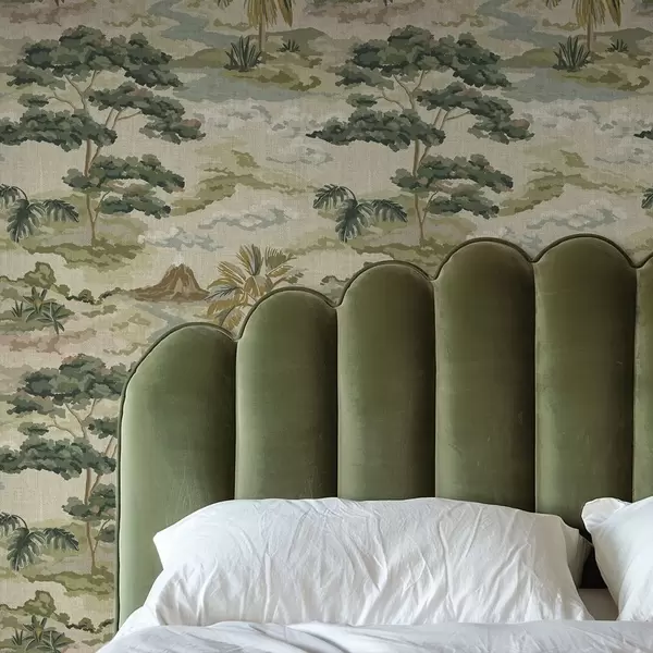Tapeta Пејзаж са реком, дрвећем и палмама у меким тоновима бр. a00736