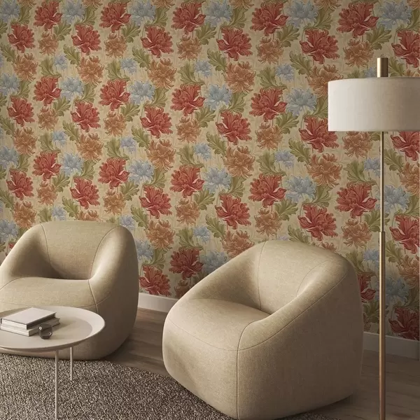 Tapeta Велике хризантеме у топлим нијансама на беж позадини бр. a00743