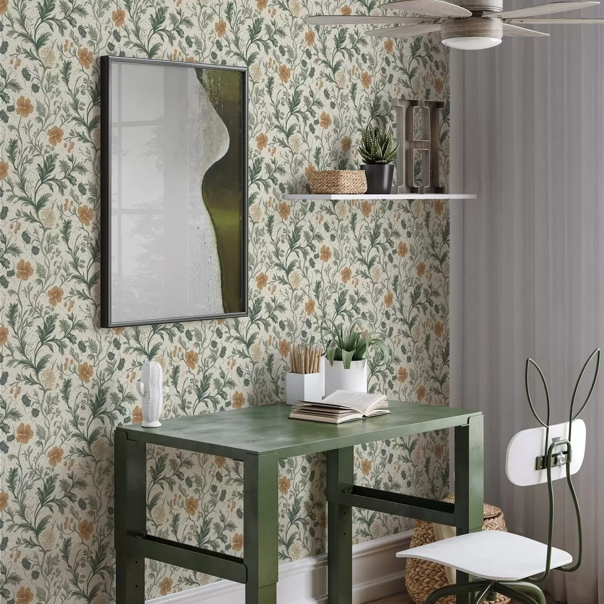 Tapeta Танке гране са цвећем и бобицама на зрнастој позадини бр. a00744