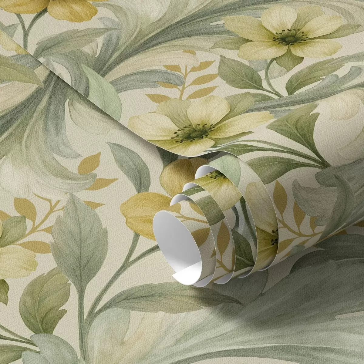 Tapeta Акантусови свици са цветовима у зеленим и жутим тоновима бр. a00749