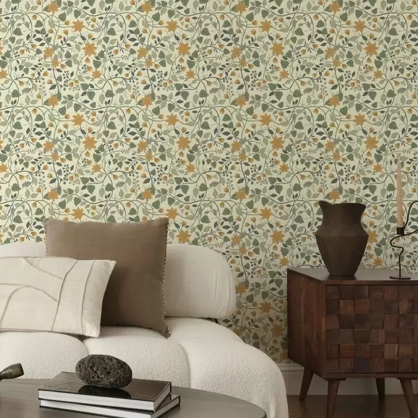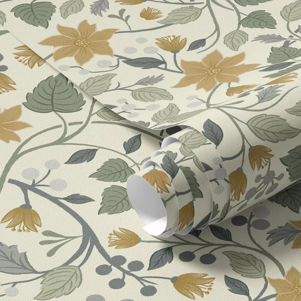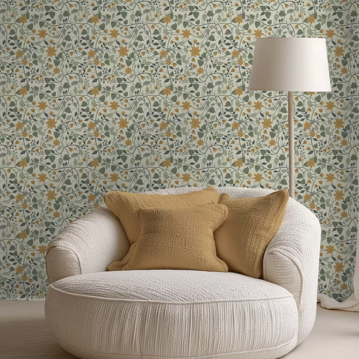 Tapeta Пењајуће цветне гране са жутим цвећем и бобицама бр. a00750