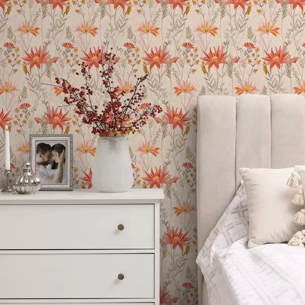 Tapeta Дивље цвеће у топлим тоновима на беж позадини бр. a00751