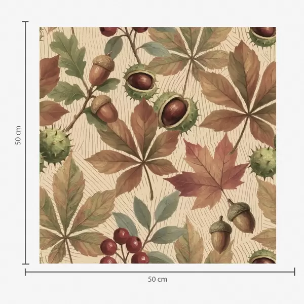 Tapeta Јесење лишће, жир и бобице на беж позадини бр. a00754