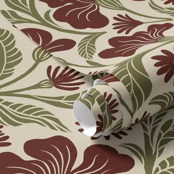 Tapeta Бордо цвеће са зеленим листовима на светлој позадини бр. a00761
