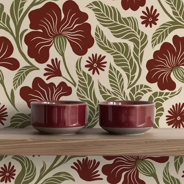 Tapeta Бордо цвеће са зеленим листовима на светлој позадини бр. a00761