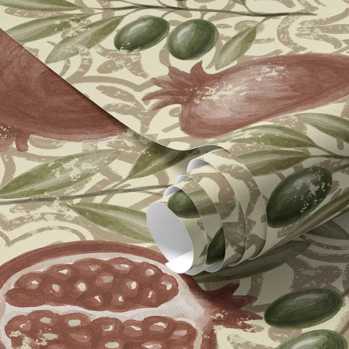 Tapeta Гранчице нара и маслине на украсној позадини бр. a00764