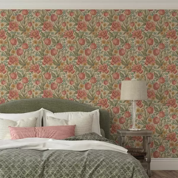 Tapeta Винтажни тулипани и астре, текстурирана кремаста земља бр. a00773