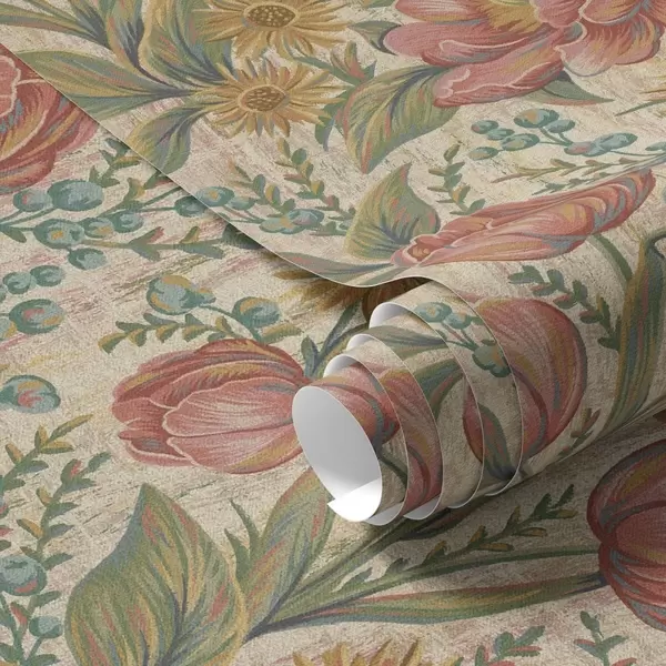 Tapeta Винтажни тулипани и астре, текстурирана кремаста земља бр. a00773