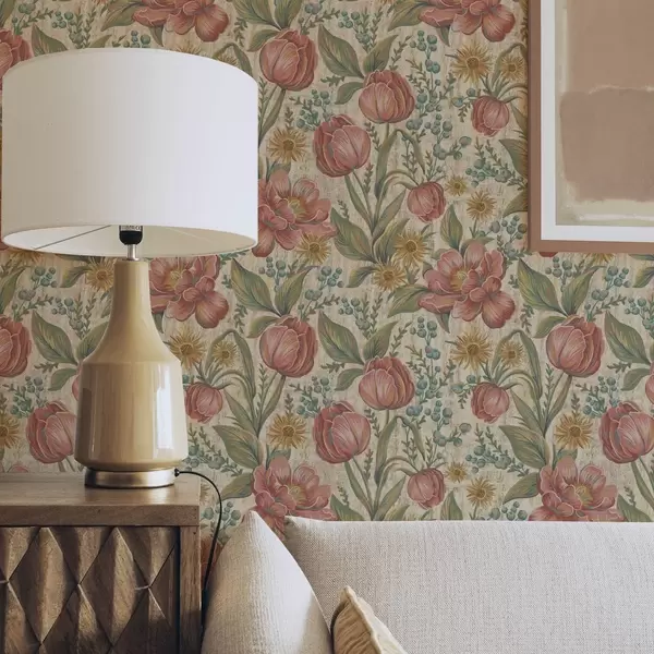 Tapeta Винтажни тулипани и астре, текстурирана кремаста земља бр. a00773