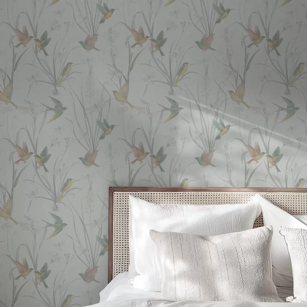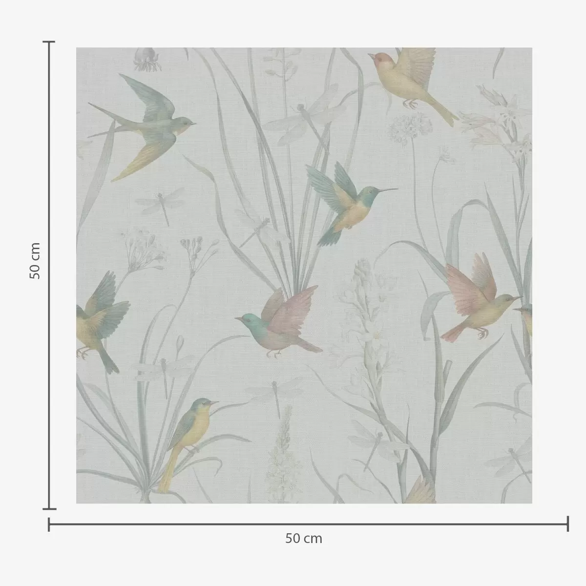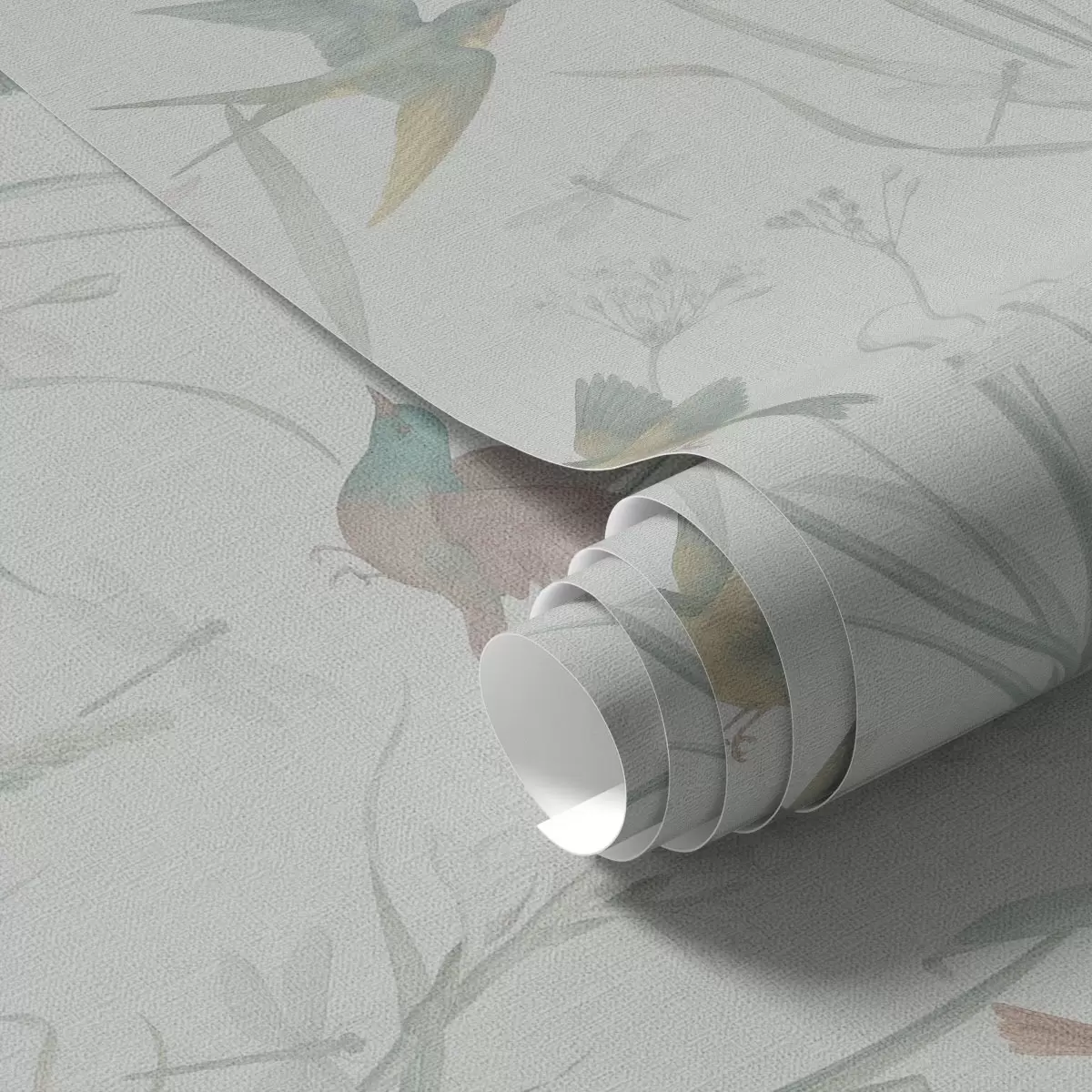 Tapeta Птице међу ливадским травама на светло сивом тлу бр. a00776v1