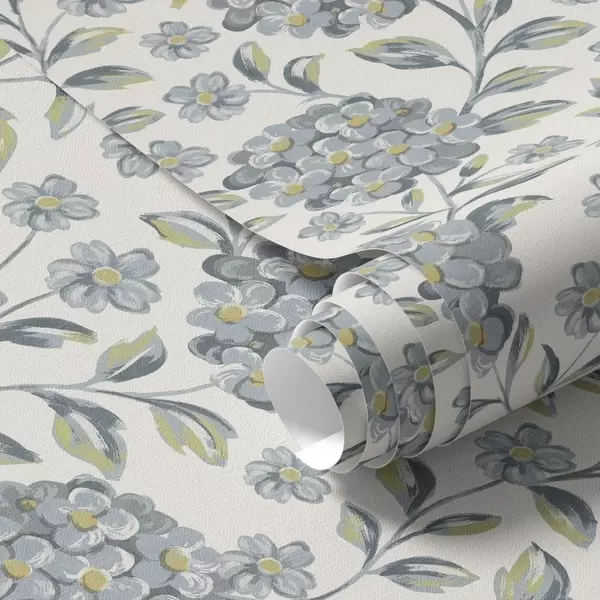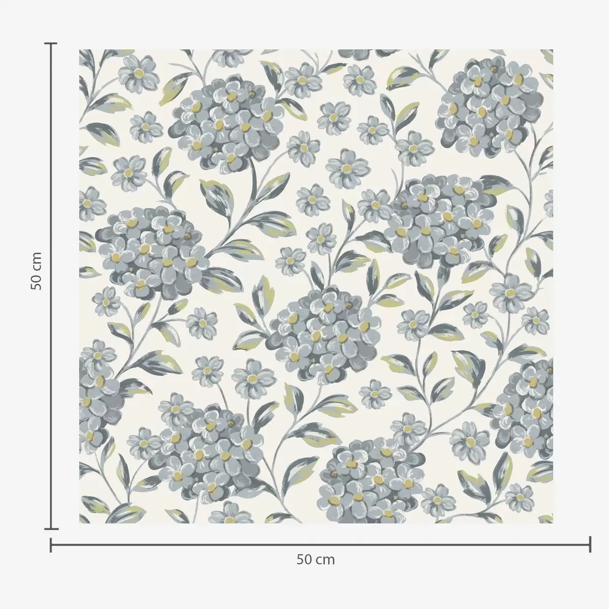 Tapeta Четкасти цветови и листови у сиво-плавој палети бр. a00778