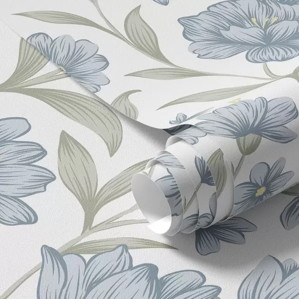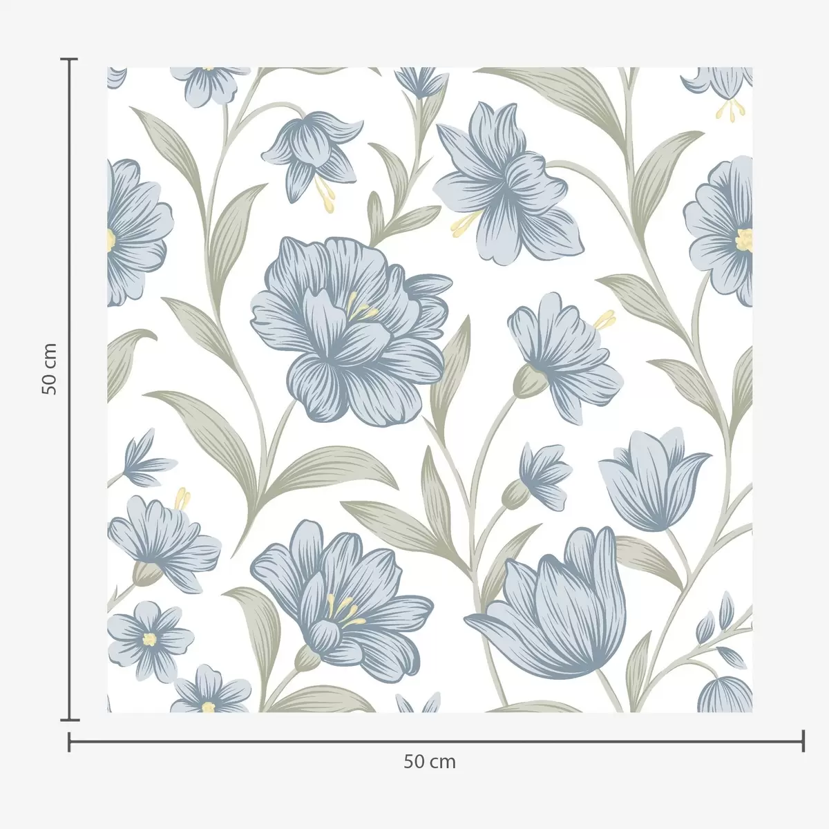 Tapeta Прашњаво плаво цвеће са листовима маслине на белој боји бр. a00780