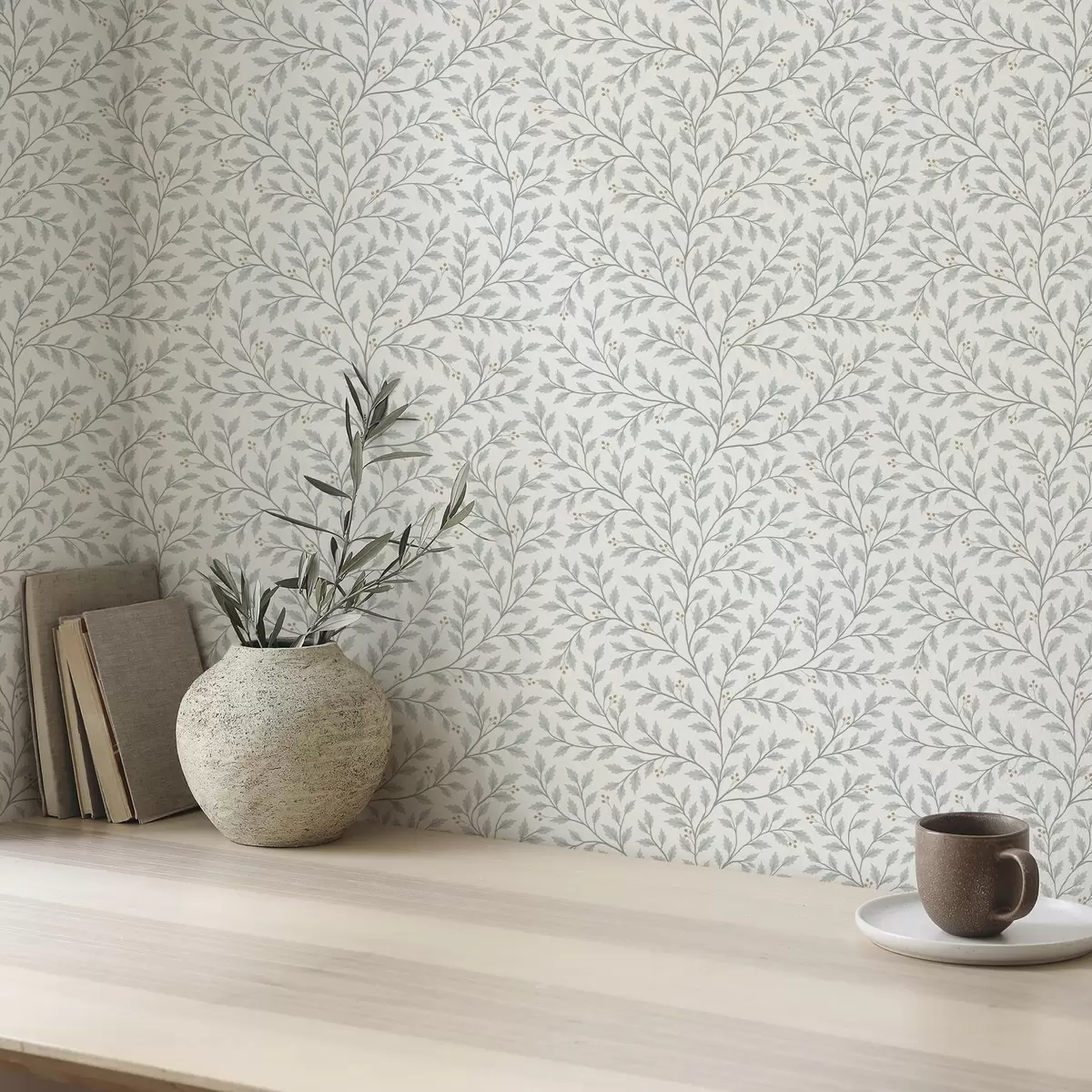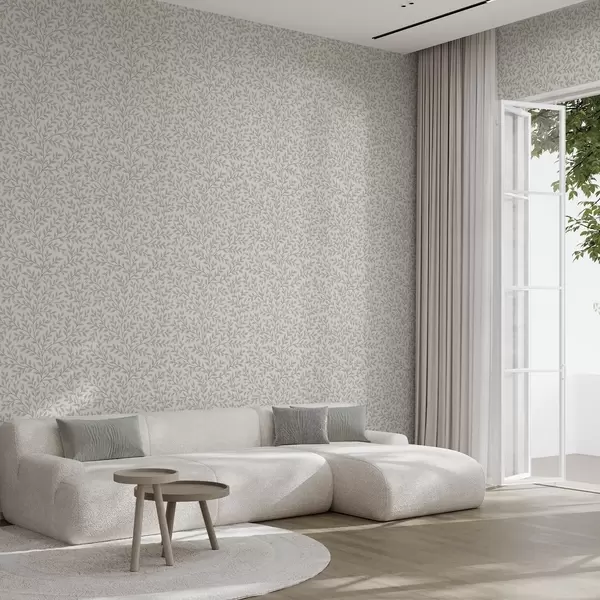 Tapeta Гране са лишћем и бобицама, светло кремасте боје и жалфије бр. a00783