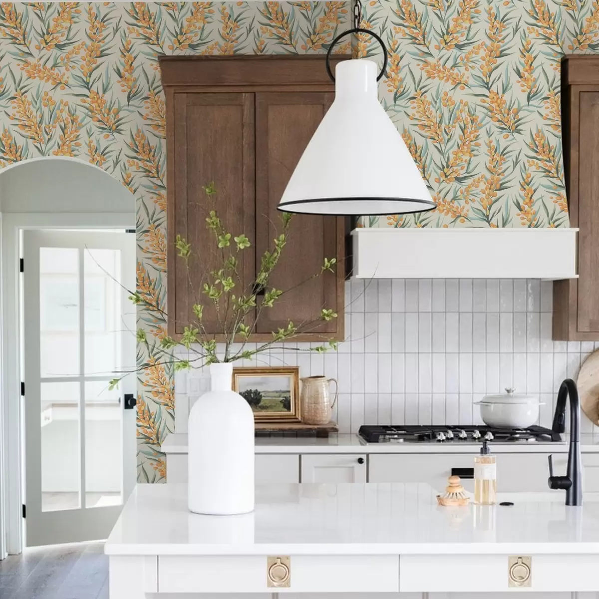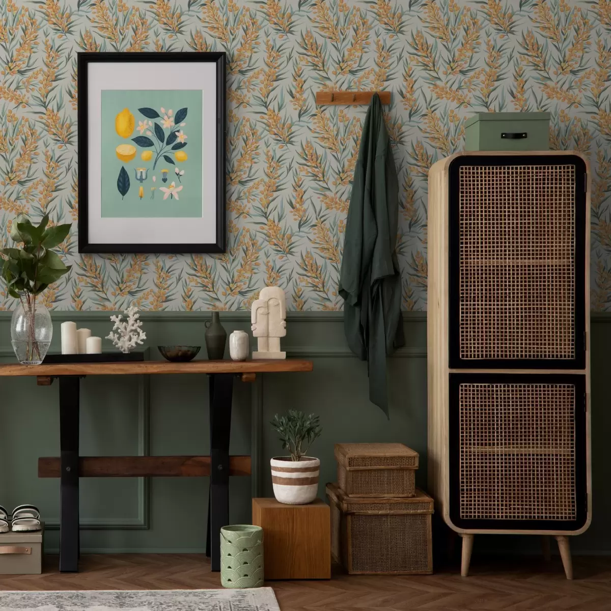Tapeta Гране морске пасја трна са наранџастим бобицама, светла позадина бр. a00792