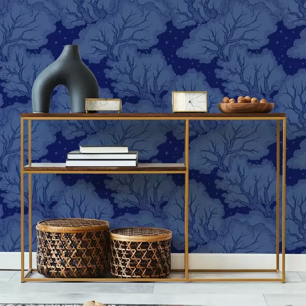 Tapeta Силуете дрвећа под звезданим небом у нијансама плаве бр. a00798