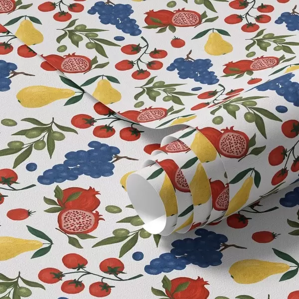 Tapeta Сочно воће: нар, грожђе, крушке на белој позадини бр. a00801