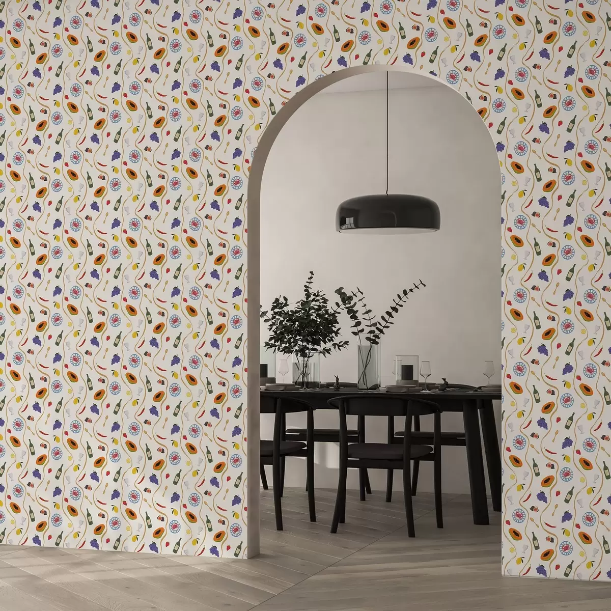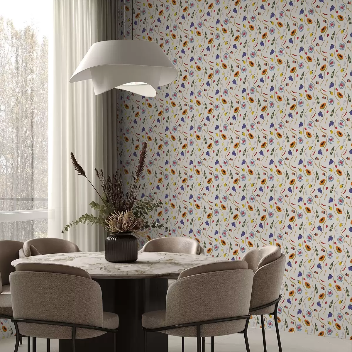 Tapeta Флаше, папаја, лимуни и зачини на светлој позадини бр. a00802