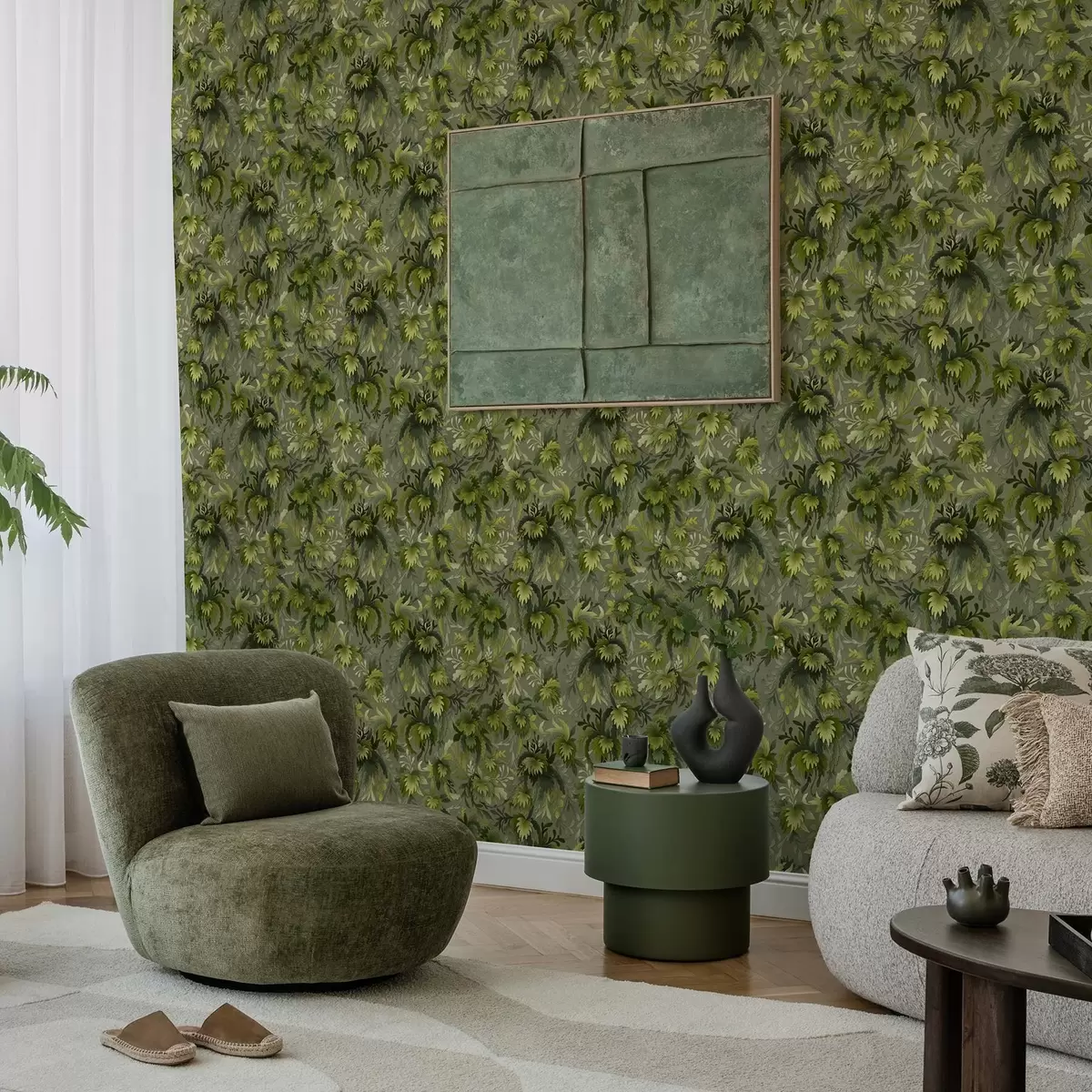 Tapeta Густо зелено лишће на сиво-зеленој позадини бр. a00805v1