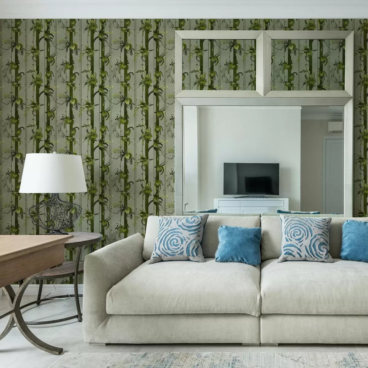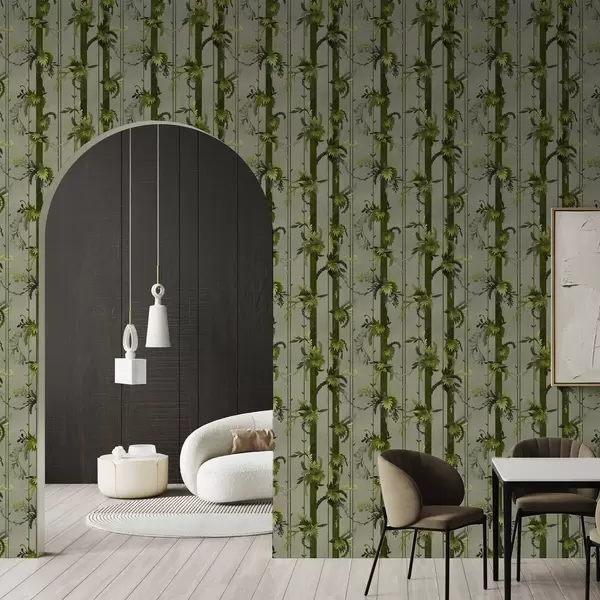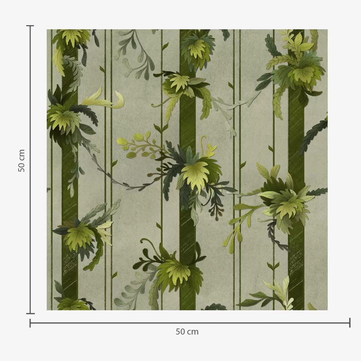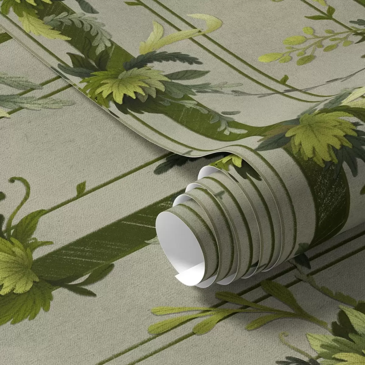Tapeta Зелено лишће у вертикалним пругама на сивој позадини бр. a00807v1