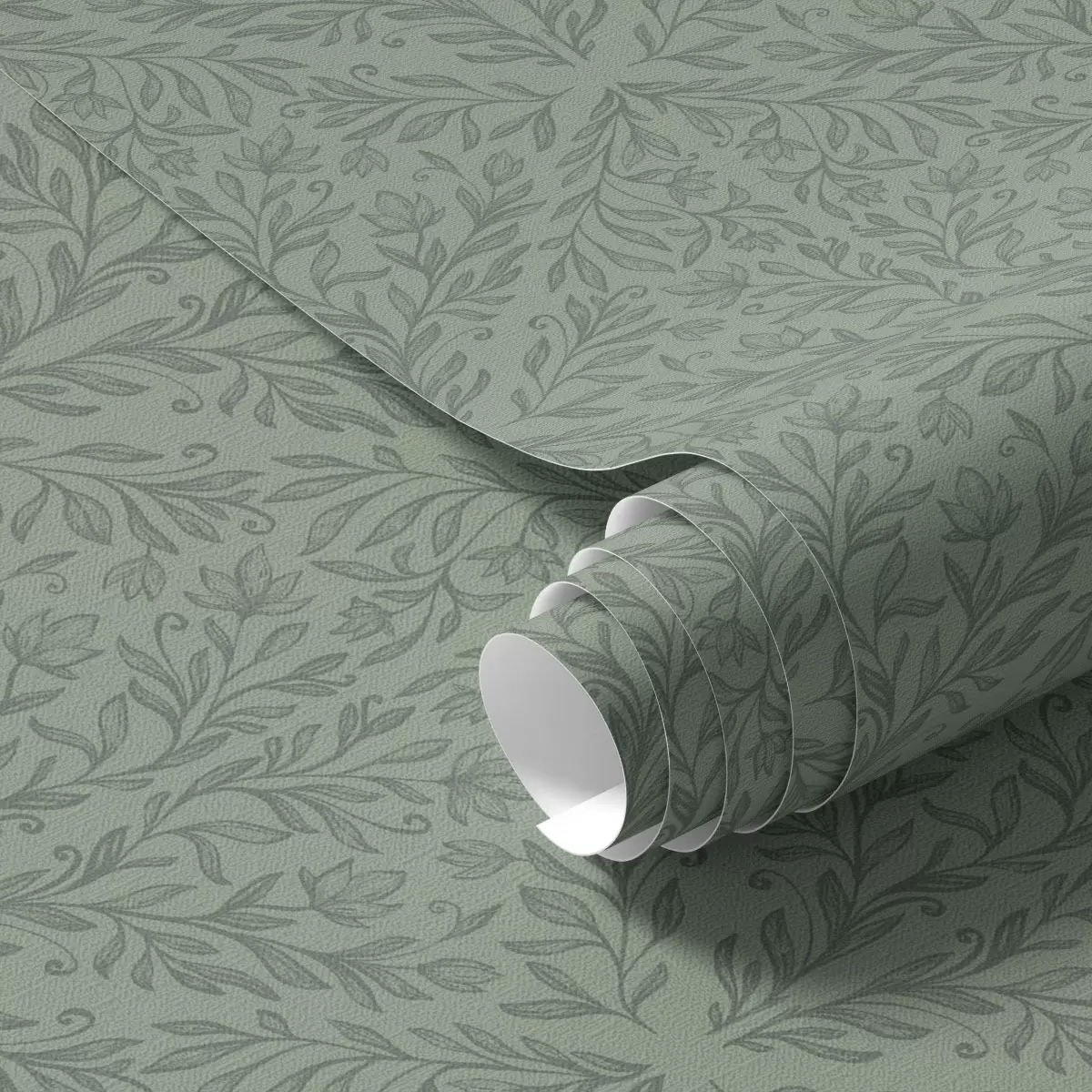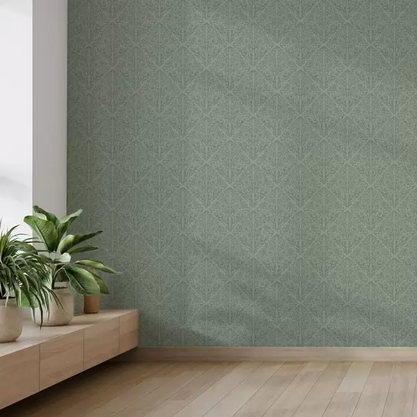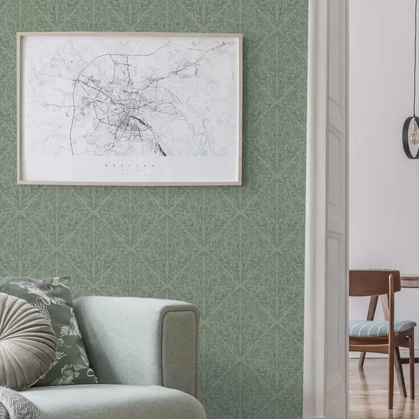 Tapeta Фини ботанички дамаск у пригушеној зеленој боји бр. a00815v1