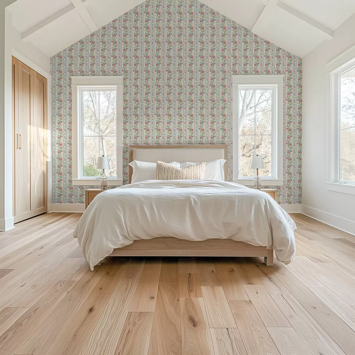 Tapeta Пруге са коралним пупољцима на светло кремастој позадини бр. a00816v1