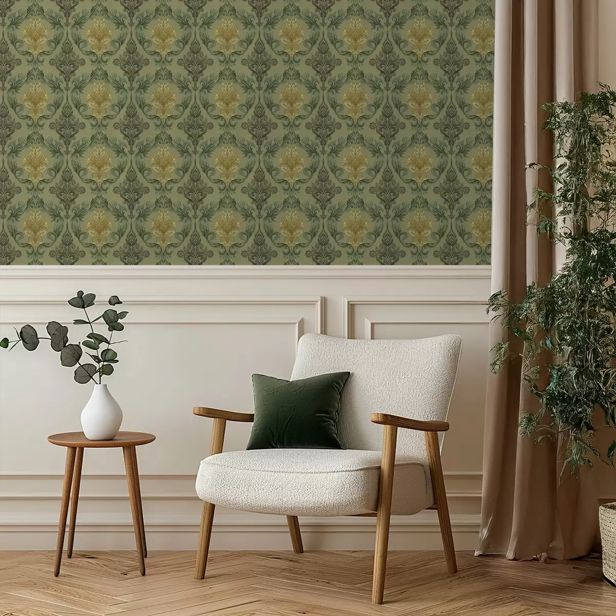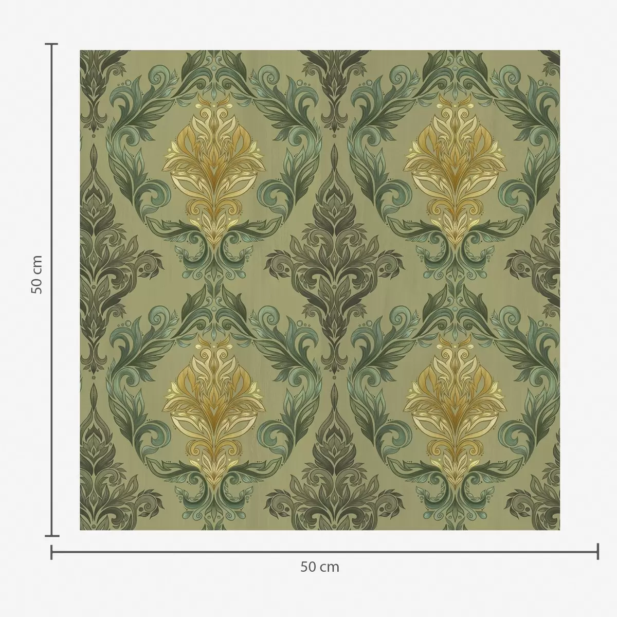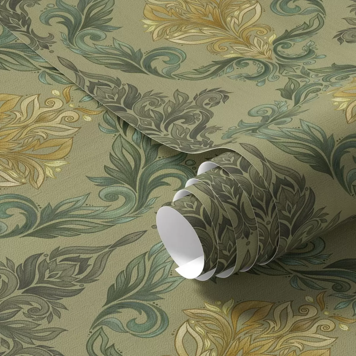Tapeta Дамаск са биљним спиралама, маслинасто-окер палета бр. a00828