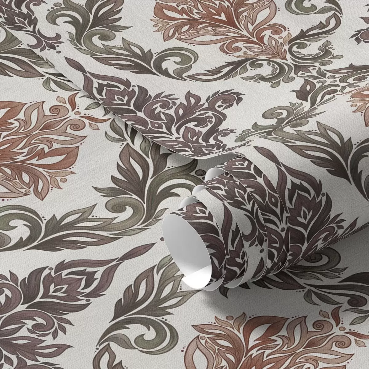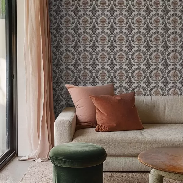 Tapeta Дамаск са бакарно-смеђим акцентима на светлој подлози бр. a00828v4