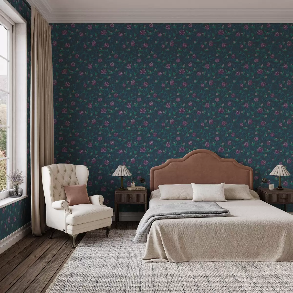 Tapeta Детелина са љубичастим цветовима на тамноплавој позадини бр. a00836