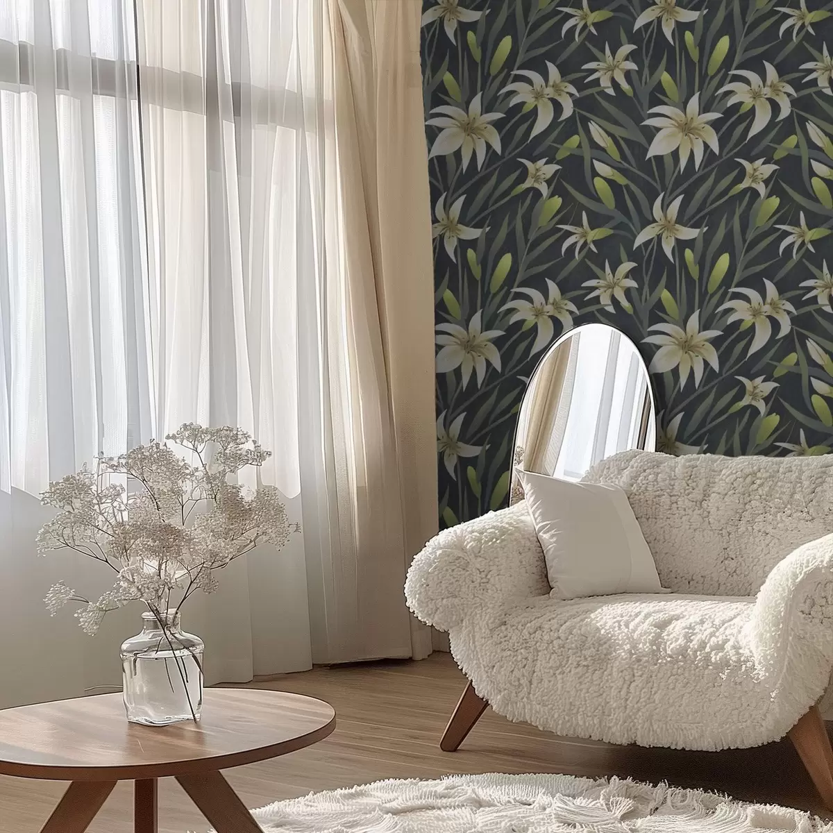 Tapeta Крем љиљани са листовима на тамној позадини бр. a00837v1