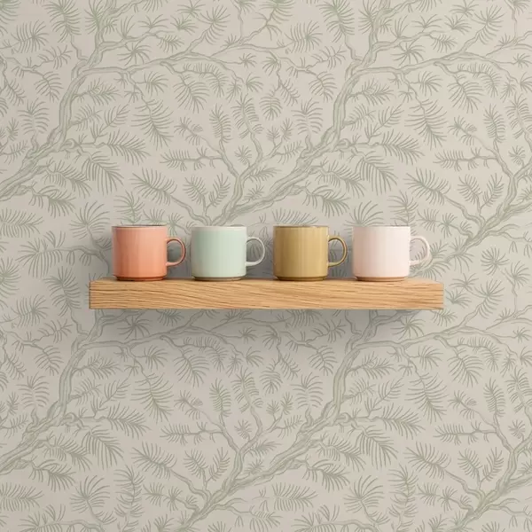 Tapeta Борове гране у светлозеленим тоновима на беж позадини бр. a00838v1