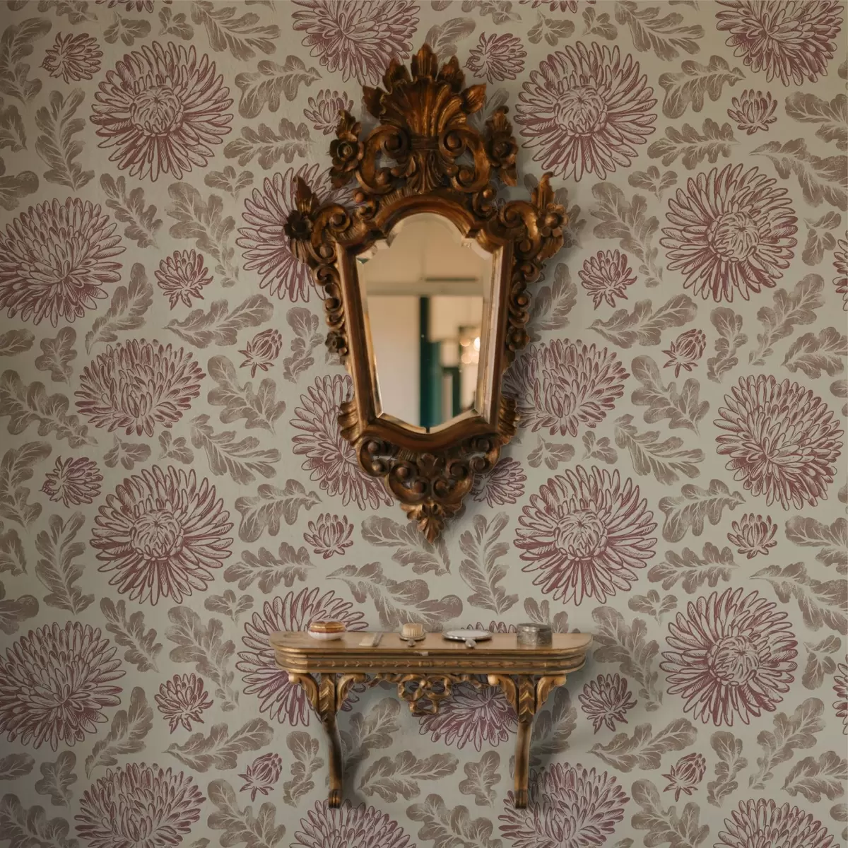 Tapeta Хризантеме са винским акцентима на крему бр. a00840v1