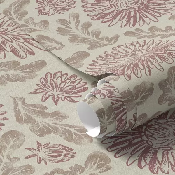 Tapeta Хризантеме са винским акцентима на крему бр. a00840v1