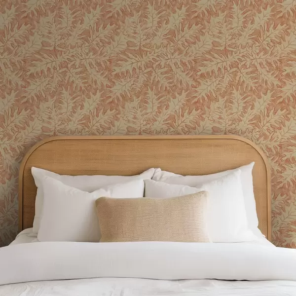 Tapeta Велики храстов листови у теракоти на кремастој подлози бр. a00846