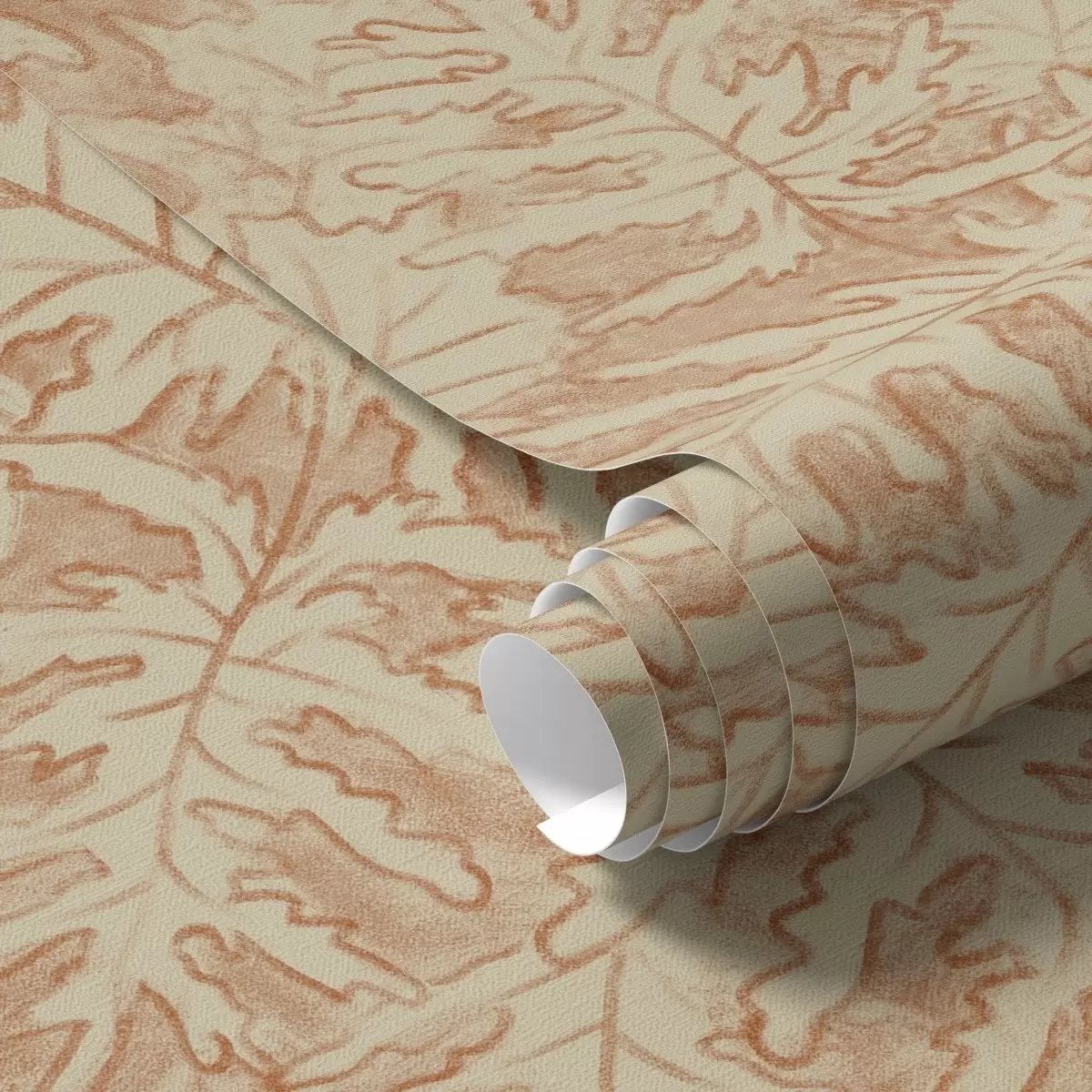 Tapeta Велики храстов листови у теракоти на кремастој подлози бр. a00846
