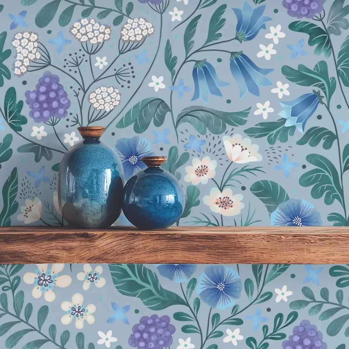 Tapeta Дивље цвеће и бобице на сиво-плавој позадини бр. a00849v1