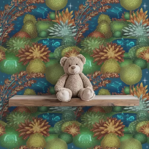 Tapeta Бајковита ноћна башта са језером и светлећим животињама бр. a00851