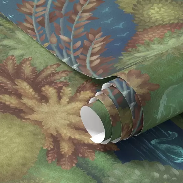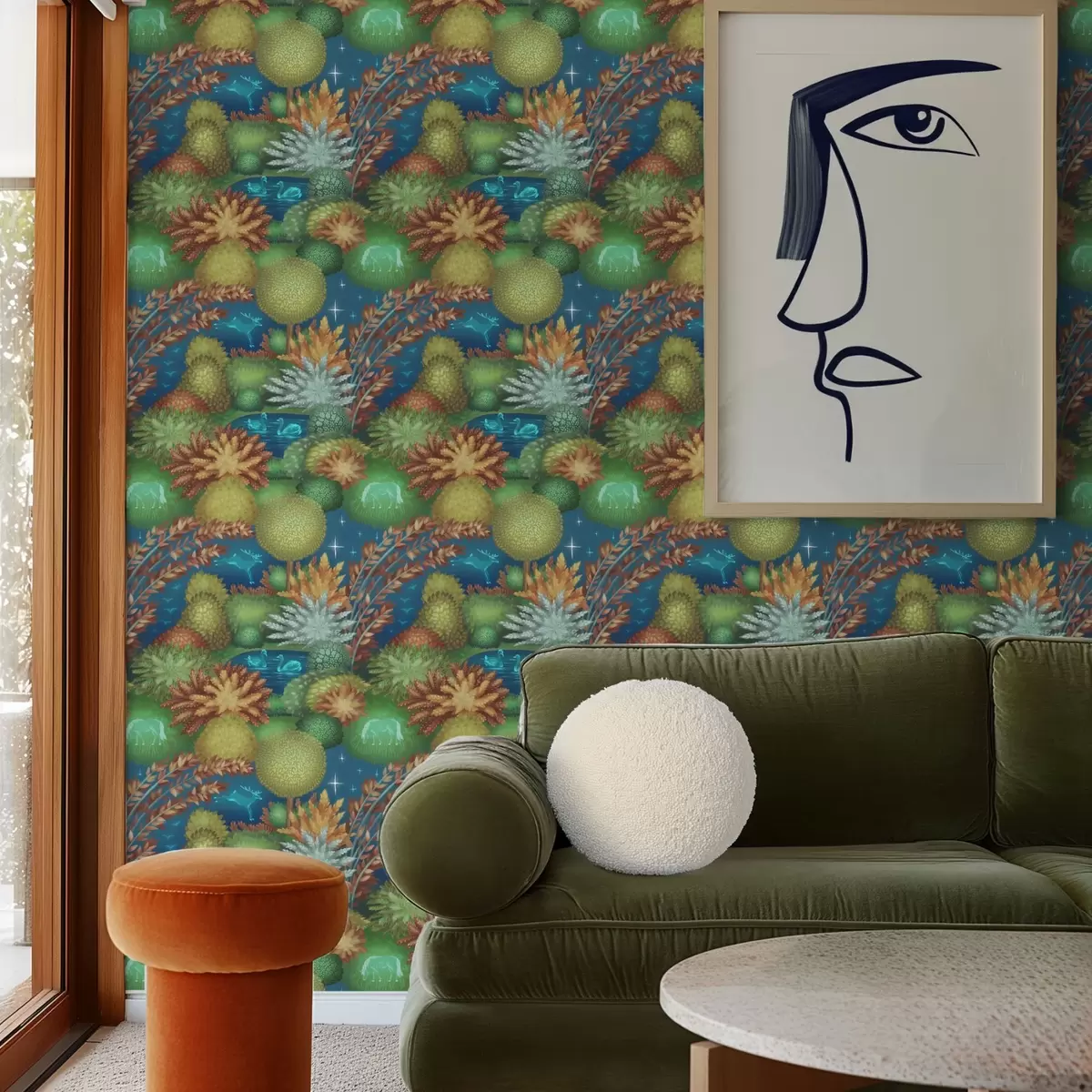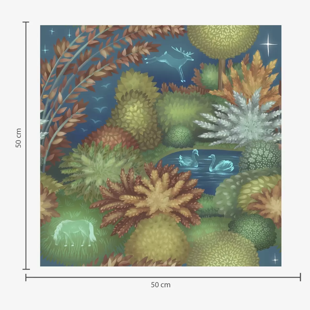 Tapeta Бајковита ноћна башта са језером и светлећим животињама бр. a00851