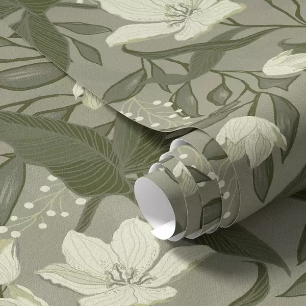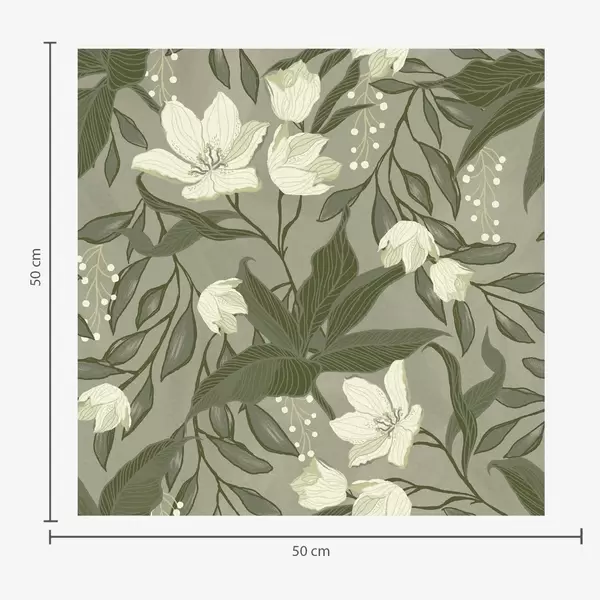 Tapeta Бледи љиљани и лишће на сиво-маслинастој боји бр. a00854