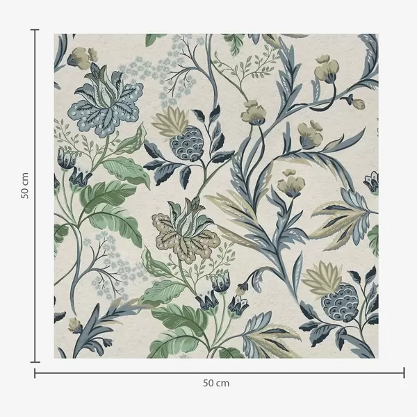 Tapeta Плаво-зелени народни цвећари и листови на кремастој подлози бр. a00863