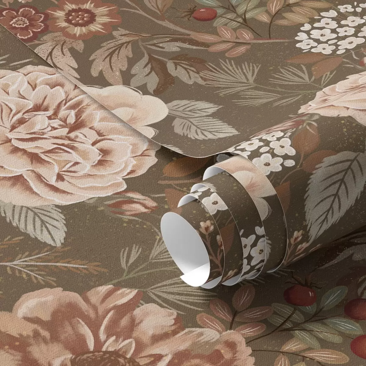 Tapeta Топле руже и бобице на смеђој позадини бр. a00868