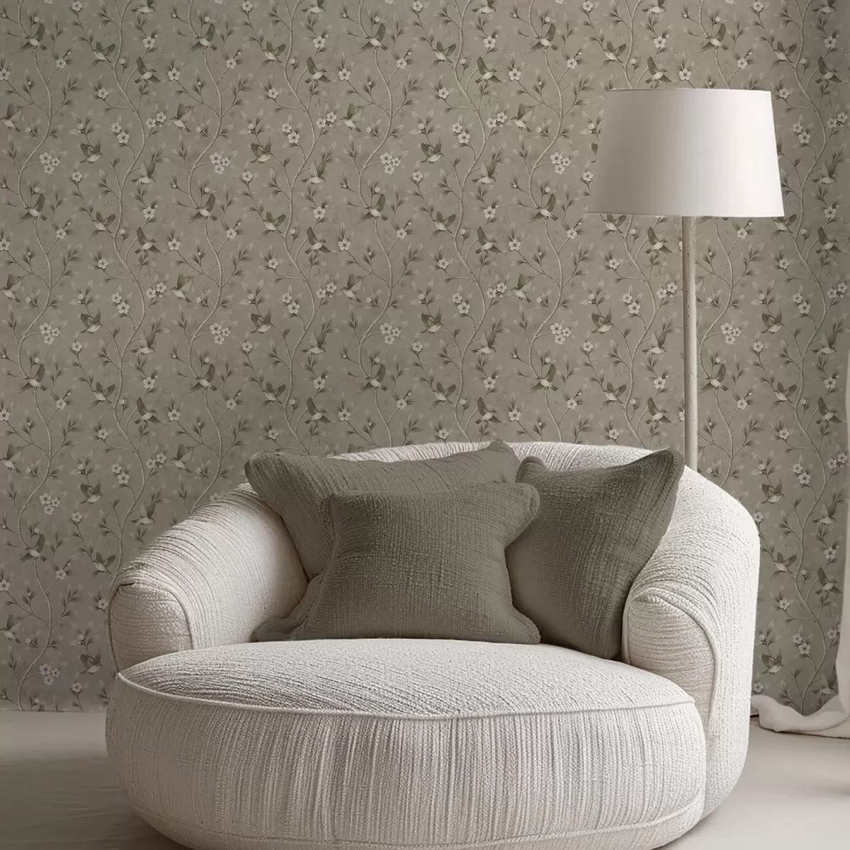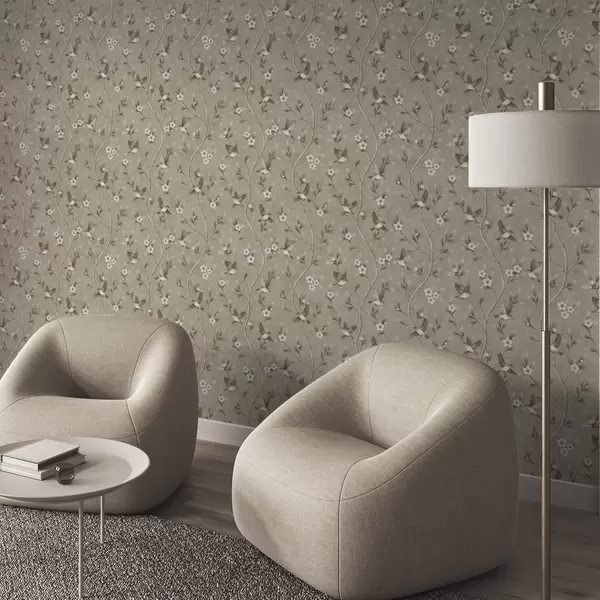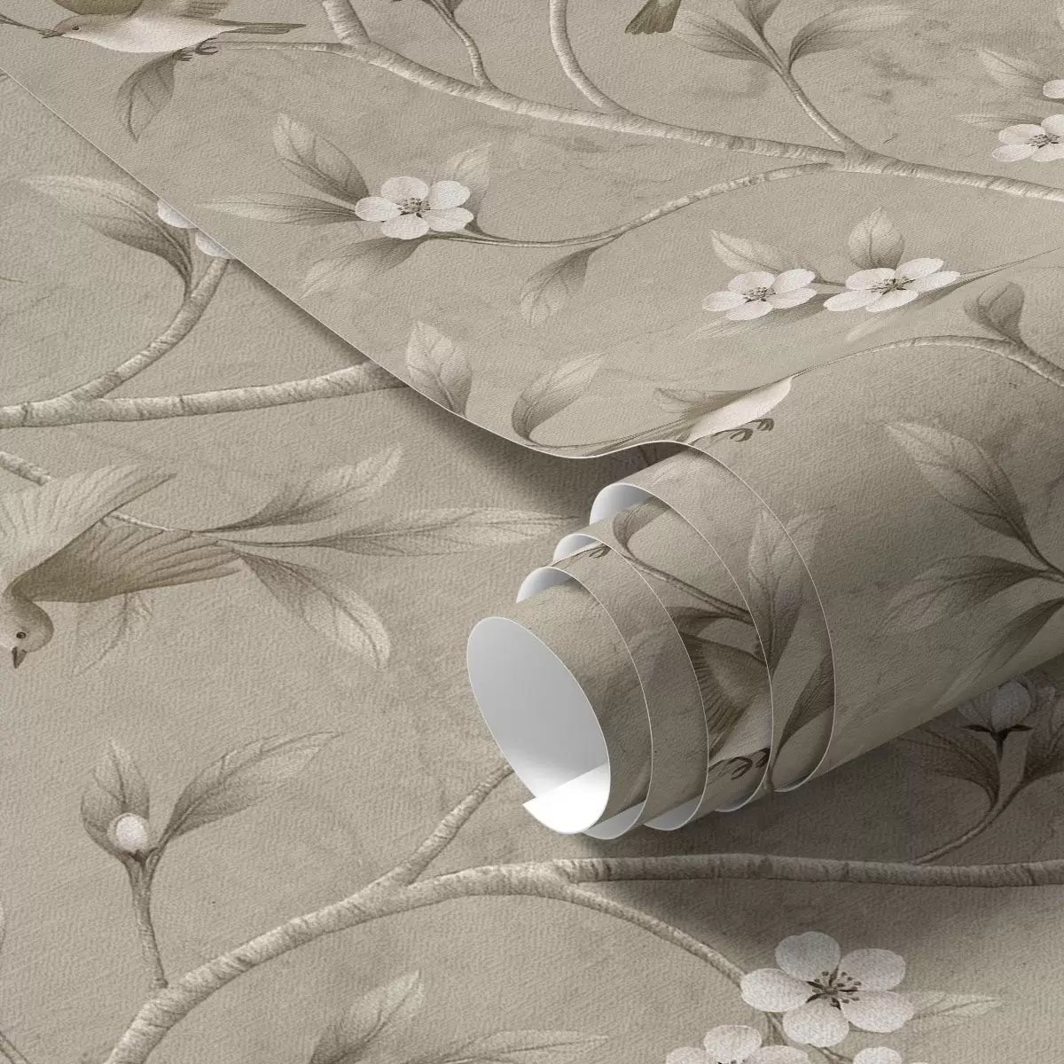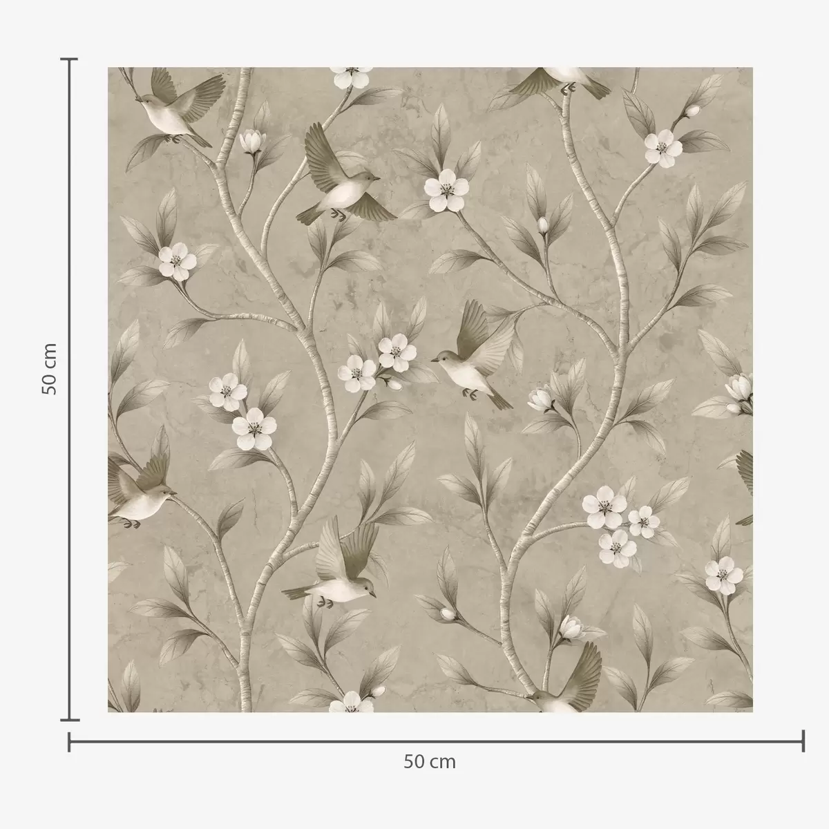 Tapeta Птице и цветајуће гране у топлим сепија тоновима бр. a00882
