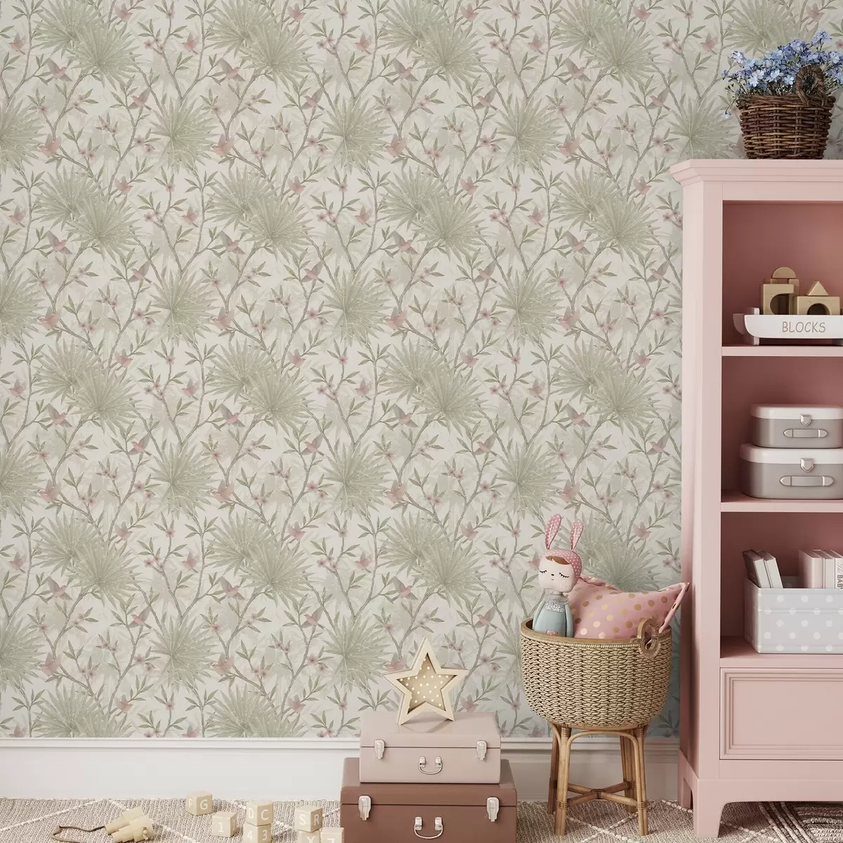 Tapeta Нежне ружичасте птице међу палминим листовима бр. a00883